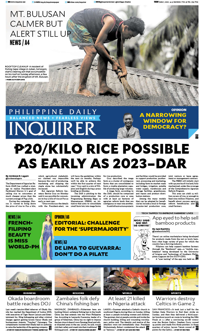 ASEANEWS | Paper Edition Headlines-MANILA- P20 per kilo rice possible as early as 2023 – DAR