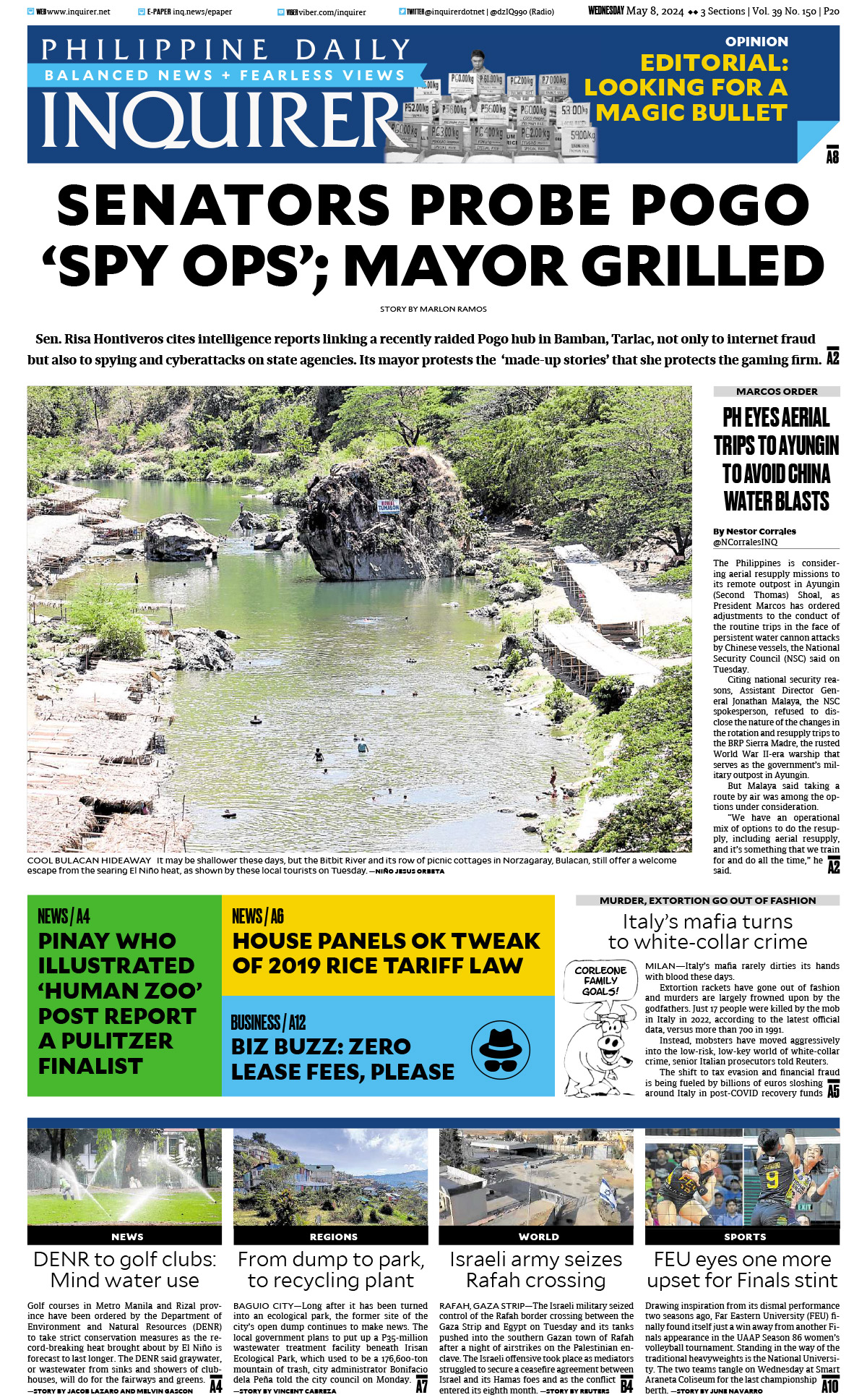 PAPER EDITIONS | 5.8.24 – Wednesday : Wescom chief agreed to China’s ‘new model’