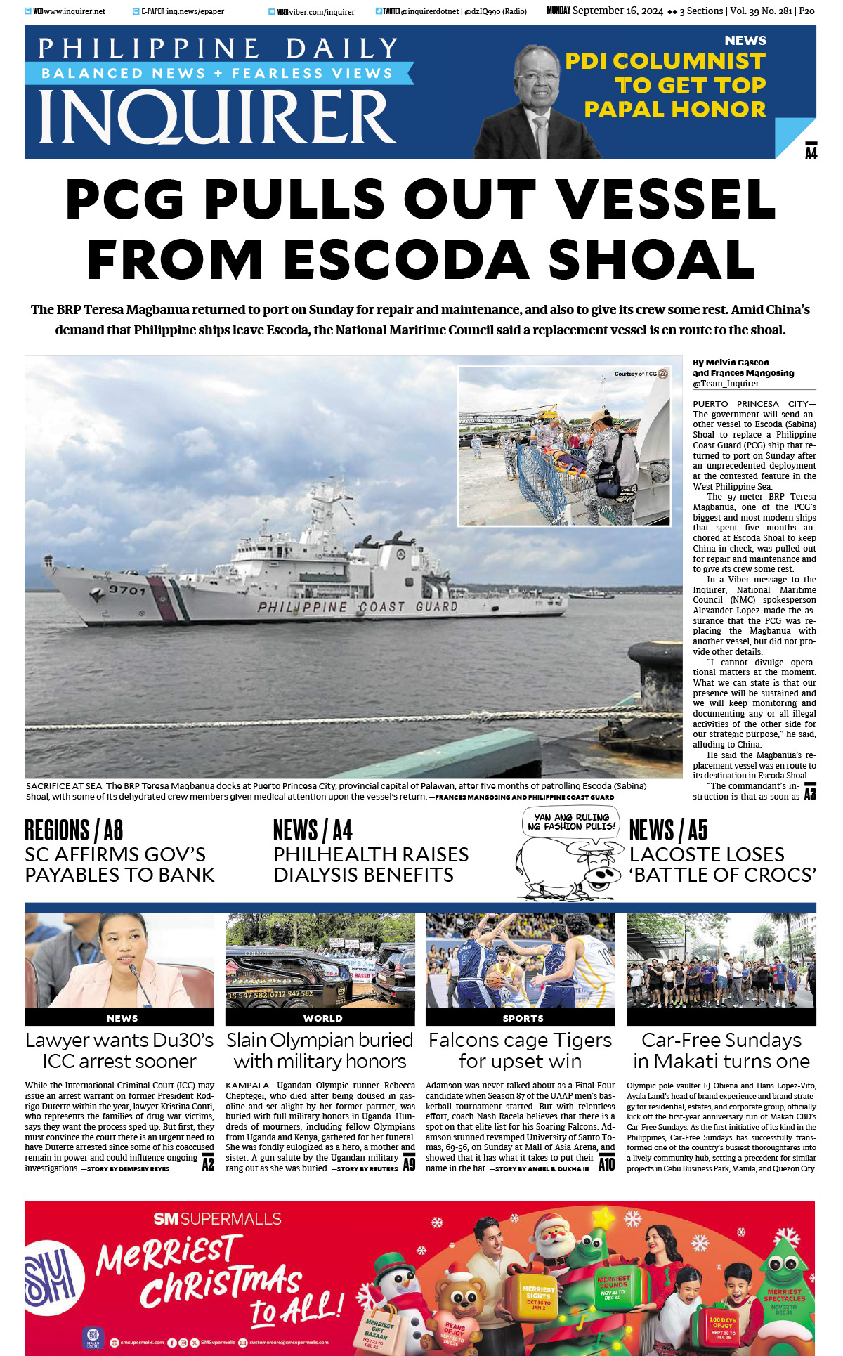 ASEANEWS General Latest Lifestyle Politics PAPER EDITIONS | 9.16.24 – Monday | PCG pulls out vessel from Escoda Shoal September 16, 2024September 16, 2024 Contributor 1 Comment PAPER EDITIONS | 9.16.24 – Monday | PCG pulls out vessel from Escoda Shoal Philippine PAPER EDITIONS . It's only fair to share...