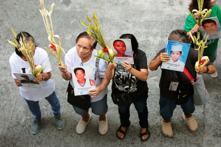 PRAYERS FOR JUSTICE Relatives of drug war victims join prayers for justice for their loved ones on Palm Sunday at the Arnold Janssen Kalinga Foundation in Sta. Cruz, Manila. —Grig C. Montegrande | Philippine Daily InquirerGrig C. Montegrande | Philippine Daily Inquirer