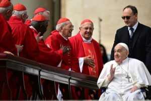 “Viva il Papa!” (Long live the pope), “Bravo!” the crowd shouted as Francis looped through the square in his open-topped popemobile and then up and down the main avenue leading to it. He stopped occasionally to bless babies brought up to him, a scene that was common in the past but unthinkable just a few weeks ago as the 88-year-old pope fought for his life.