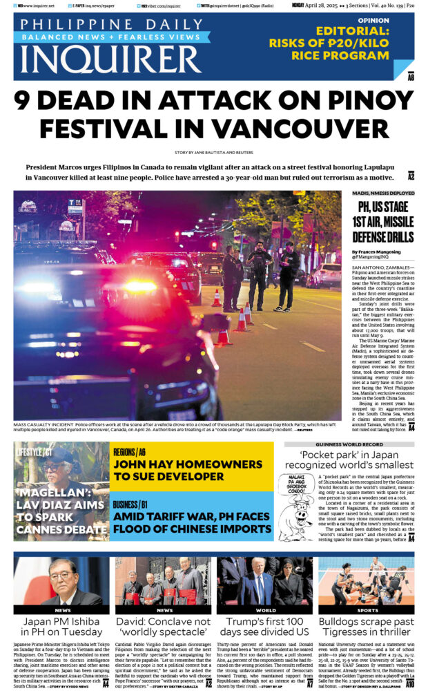 PAPER EDITIONS | 4.28.25 Monday | 9 dead in Philippines festival road crash in Vancouver