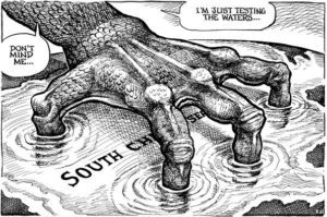 China claims practically the entire South China Sea while the Philippines, Malaysia, Vietnam, Brunei and Taiwan have overlapping claims. A Hague-based arbitral tribunal voided China’s expansive claim in 2016 but the Chinese government refused to recognize the ruling.