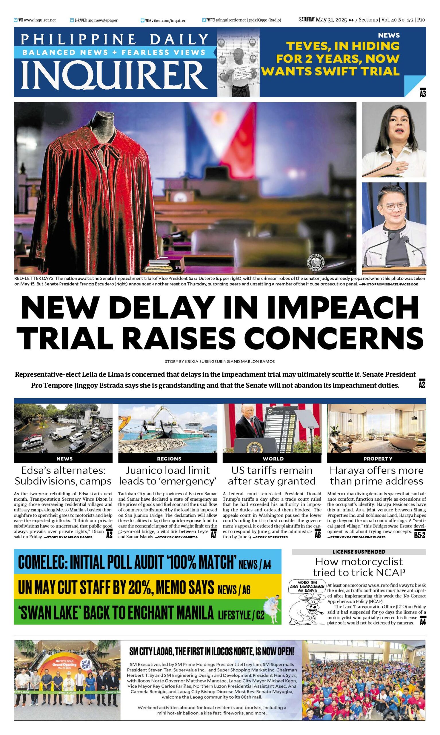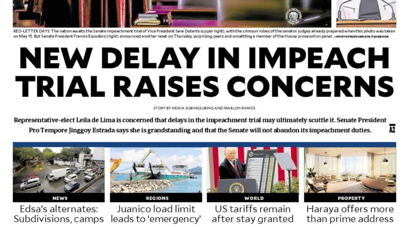 ASEANEWS General Headlines Latest Lifestyle Politics PAPER EDITIONS | 5.31.25 Saturday | NEW DELAY IN IMPEACHMENT TRIAL RAISES CONCERNS May 31, 2025May 31, 2025 Contributor 0 Comment PAPER EDITIONS | 5.31.25 Saturday | NEW DELAY IN IMPEACHMENT TRIAL RAISES CONCERNS ASEAN HARD COPIES: .. . Other Copies . It's only fair to share...