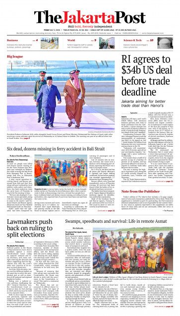 ASEANEWS General Headlines Latest PAPER EDITIONS | 7.4.25 Friday | RI agrees to $34b US deal before trade deadline July 4, 2025July 4, 2025 Contributor 0 Comment PAPER EDITIONS | 7.4.25 Friday | RI agrees to $34b US deal before trade deadline ASEAN HARD COPIES .. Other Copies: It's only fair to share...