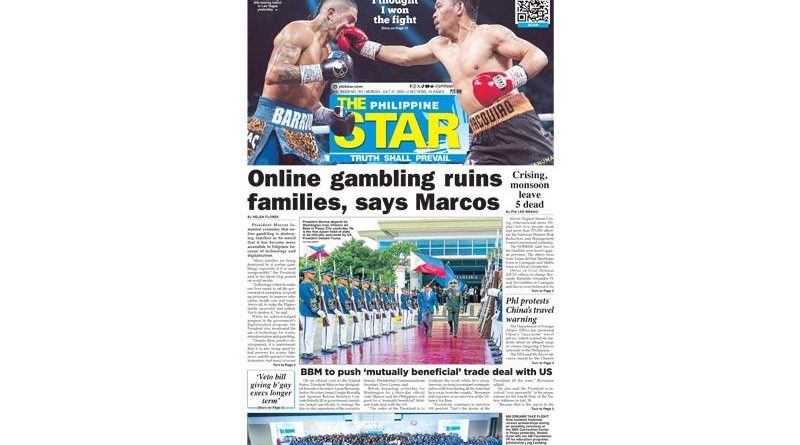 PAPER EDITIONS | 7.21.25 – Monday | Online gambling ruins families, says Marcos