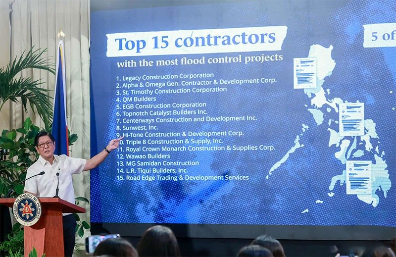 MANILA, Philippines — About a fifth of the P545-billion funding for flood control projects since the start of the Marcos administration went to just 15 contractors, while more than 6,000 projects did not provide specifics on the nature of the construction works they covered.