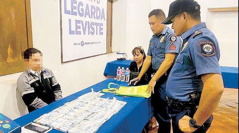 Batangas police chief Col. Geovanny Emerick Sibalo said authorities received information from Leviste’s staff about the supposed bribery attempt. Sibalo said police officers caught Calalo “in the act” of attempting to hand over the money.