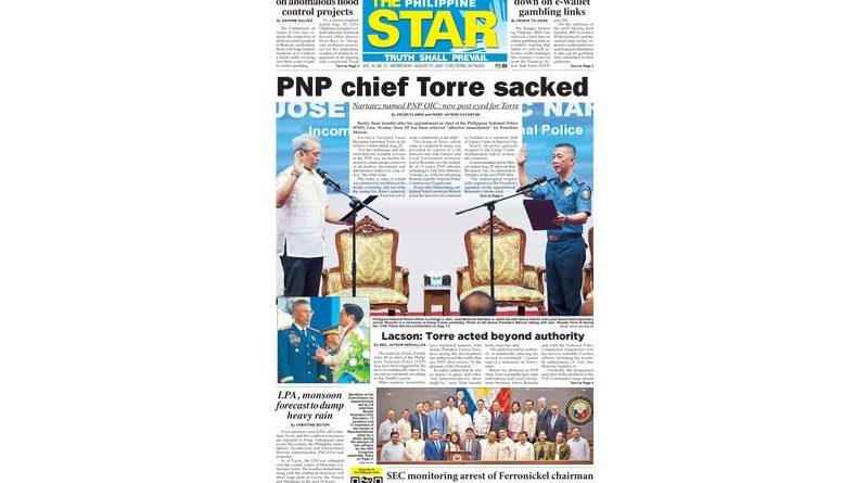 August 27, 2025August 27, 2025 Contributor 0 Comment PAPER EDITIONS | 8.27.25 – Wednesday | PNP chief Torre sacked