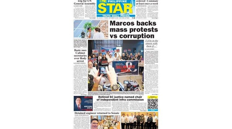 PAPER EDITIONS | 9.16.25 – Tuesday | Marcos backs mass protests vs corruption