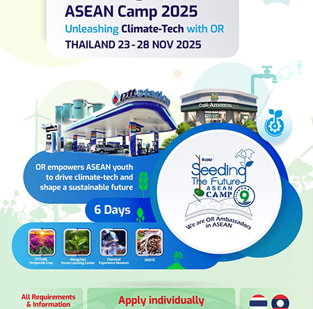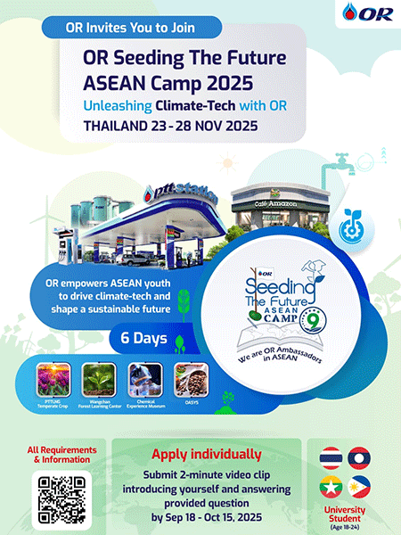 Lao university students have a unique opportunity to take part in an international youth camp in Thailand. PTT Oil and Retail Business Public Company Limited (OR) is now accepting applications for the “OR Seeding the Future ASEAN Camp 2025”, which will take place from 23 to 28 November 2025.