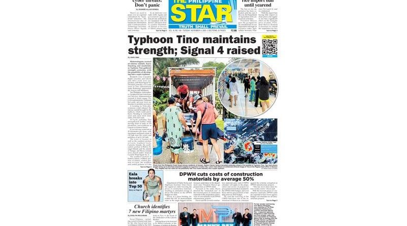 November 4, 2025November 4, 2025 Contributor 0 Comment ASEANEWS PAPER EDITIONS | 11.4.25 Tuesday | Typhoon Tino maintains strength; Signal 4 raised