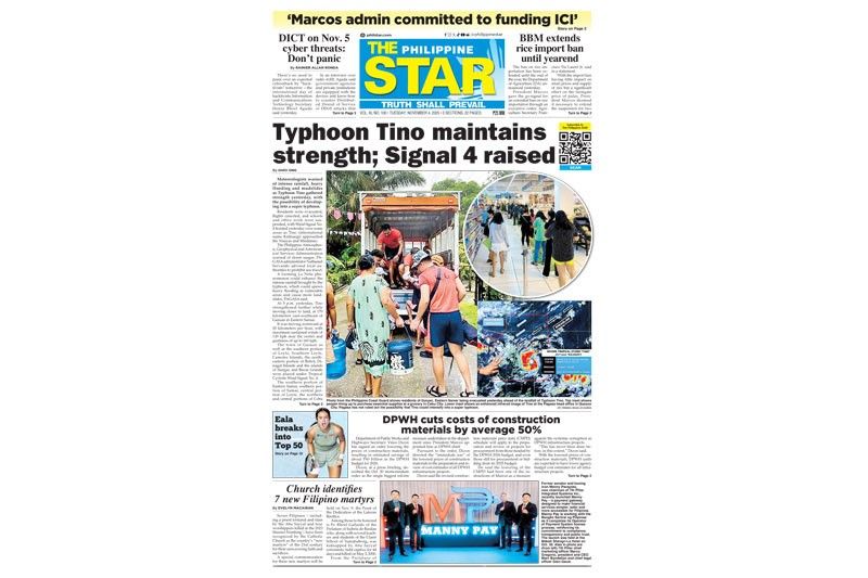 pageone11042025Daily Tribune (Philippines)Today's Front PageThe STAR Cover (November 4, 2025)