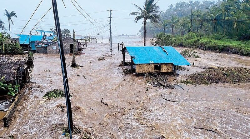 Handout photo from the Municipal Disaster Risk Reduction and Management Office of Pandan, Catanduanes shows houses amid surging floodwaters spawned by Super Typhoon Uwan on November 9, 2025./ STAR / File