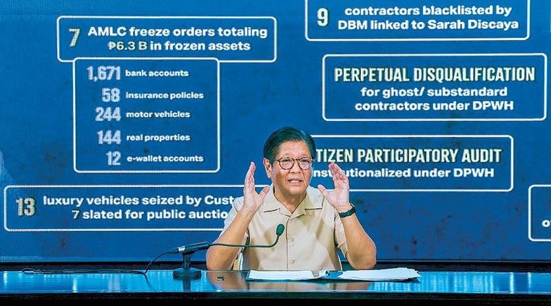 MANILA, Philippines — There would be no merry Christmas for officials and the others linked to corruption in flood control projects as they would be behind bars by then, President Marcos said yesterday, amid concerns raised by some quarters that no one has been held to account more than 100 days since his promise of action.