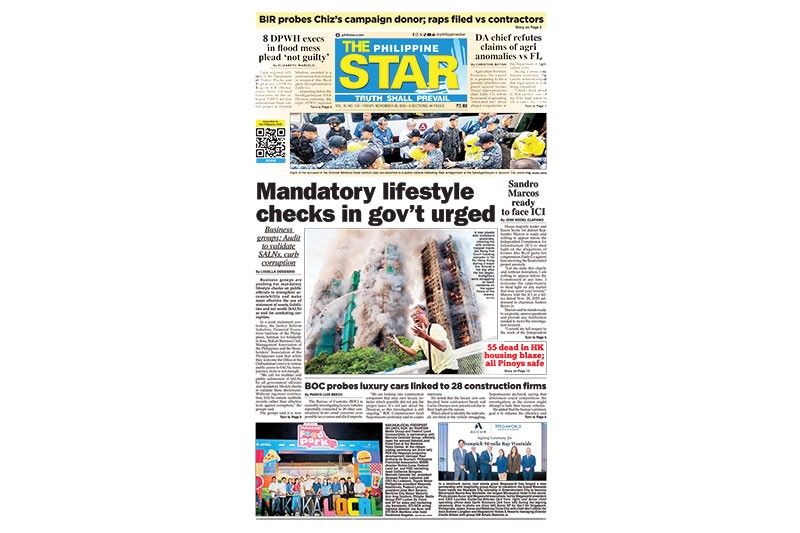 epaperDaily Tribune (Philippines)pageone11282025The STAR Cover (November 28, 2025)
