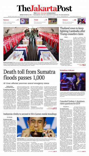 ASEANEWS PAPER EDITIONS | 12.15.25 Monday | Death toll from Sumatra floods passes 1,000