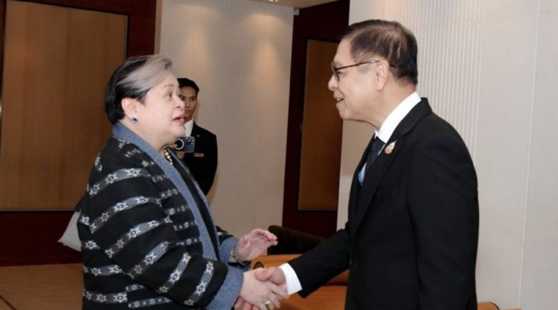 Foreign Affairs Secretary Ma. Theresa Lazaro (left) and Thai Minister of Foreign Affairs Sihasak Phuangketkeow PHOTO FROM PHILIPPINE EMBASSY IN THAILAND
