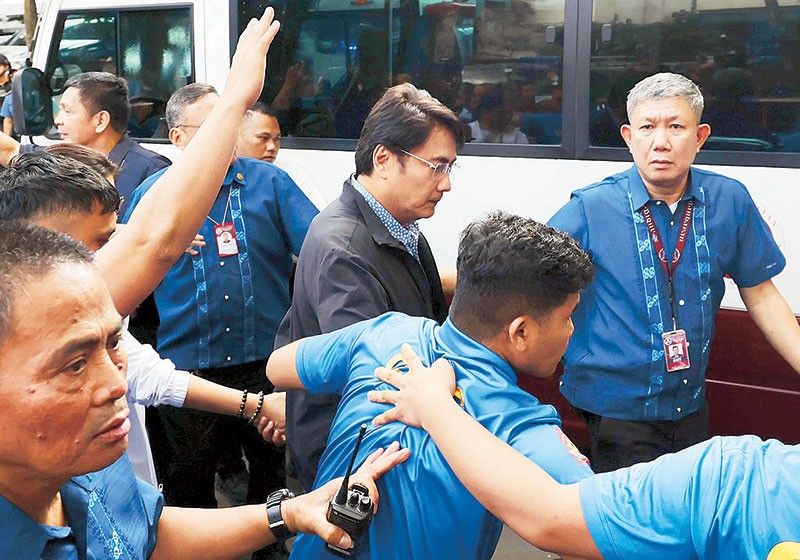 Former senator Bong Revilla arrives at the Sandiganbayan which later ordered his detention at the New Quezon City Jail in Payatas following his surrender.