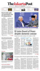 Click to read: https://www.thejakartapost.com/world/2026/01/23/ri-joins-board-of-peace-despite-domestic-unease.html?utm_source=(direct)&utm_medium=home_headlines.