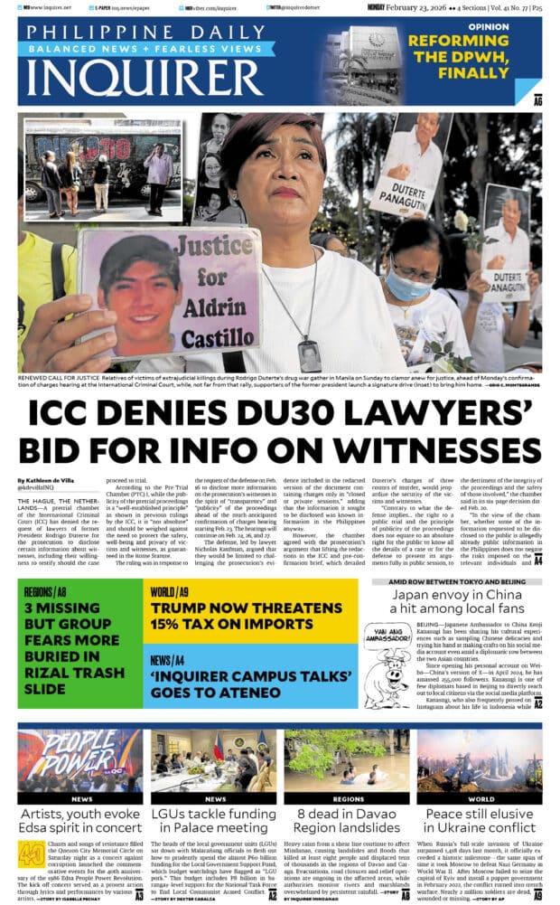 ASEANEWS PAPER EDITIONS | 02.23.26 Monday | ICC denies Duterte lawyers’ bid for info on witnesses