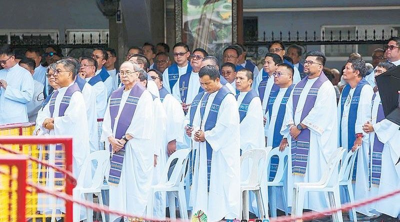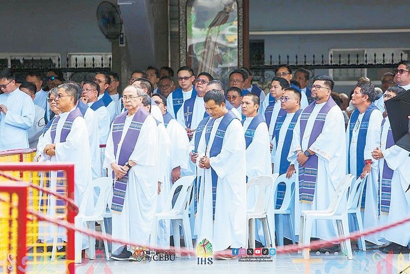 Priests gather at the Santo Niño Basilica in Cebu yesterday to commemorate the 40th anniversary of the 1986 people power revolution./ Photo courtesy of the Archdiocese of Cebu