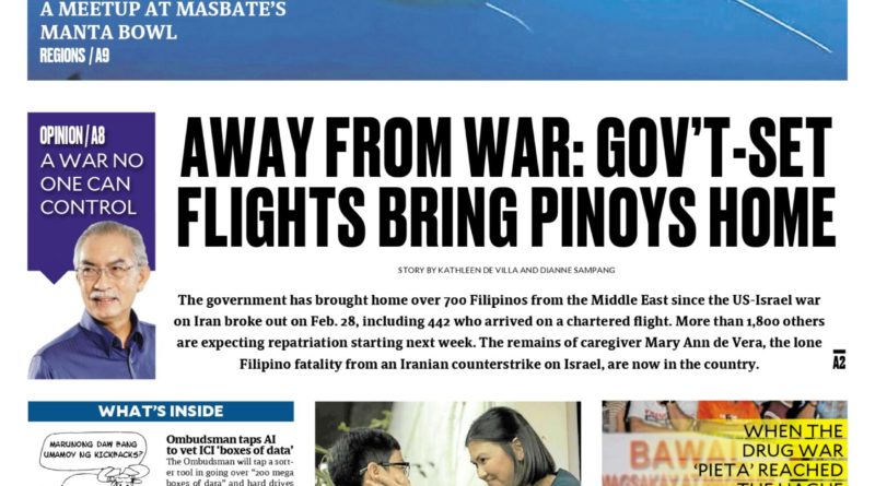 General Headlines Latest Lifestyle ASEANEWS PAPER EDITIONS | 03.15.26 – SUNDAY | Away from war: Government-set flights bring Filipinos home March 15, 2026March 15, 2026 Contributor 0 Comment ASEANEWS PAPER EDITIONS | 03.15.26 – SUNDAY | Away from war: Government-set flights bring Filipinos home HARD COPIES .. . Other Newsprints … Business & Finance MagazineThe Economist (Asia Pacific)14 Mar NewspaperThe Boston Globe14 Mar MagazineForeign Affairs1 Mar MagazineBloomberg Businessweek (Europe)1 Mar MagazineBloomberg Businessweek (North America)1 Mar MagazineLe Point12 Mar MagazineBloomberg Businessweek (Asia)1 Mar MagazineIndia Today23 Mar MagazineVanity Fair (Italy)11 Mar NewspaperLe nouvel Économiste13 Mar News NewspaperThe Wall Street Journal14 Mar MagazineThe Economist (Asia Pacific)14 Mar NewspaperThe Washington Post14 Mar NewspaperUSA TODAY US Edition13 Mar NewspaperThe Guardian14 Mar NewspaperThe Globe and Mail (Ontario Edition)14 Mar NewspaperThe Boston Globe14 Mar NewspaperEL PAÍS14 Mar NewspaperEuroNews (Français)15 Mar NewspaperThe Independent14 Mar It's only fair to share...