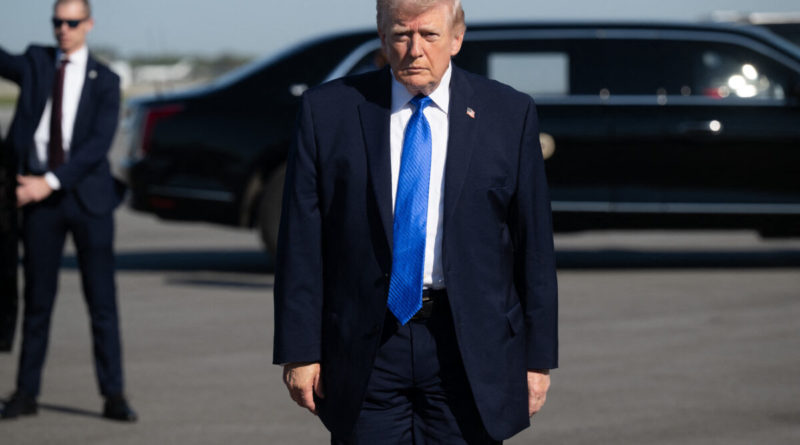 US President Donald Trump walks to speak to reporters before boarding Air Force One at Palm Beach International Airport in West Palm Beach, Florida, on March 23, 2026. Agence France-Presse