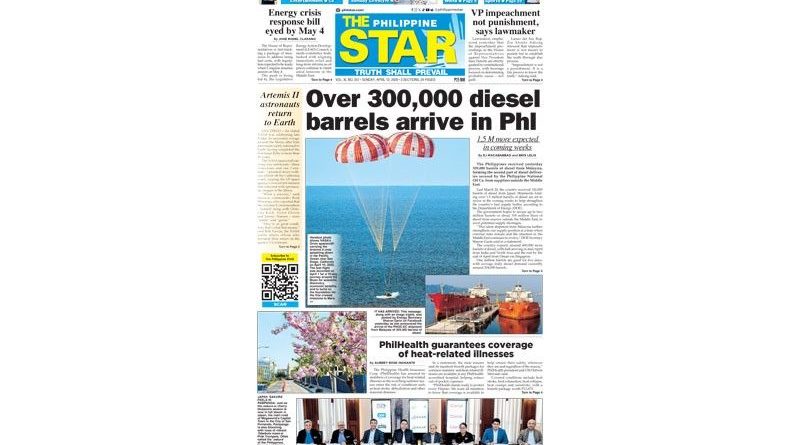 April 12, 2026 Contributor 0 Comment 000 diesel barrels arrive in Philippines, ASEANEWS PAPER EDITIONS | 4.12.26 Sunday | Over 300