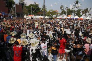Merrymakers – many dressed in elaborate costumes – were out in force in Cambodia yesterday to enjoy the 2nd day of festivities of Khmer New Year.