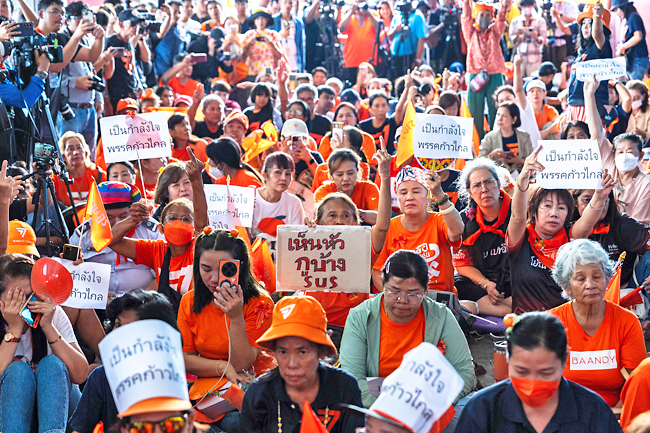 Supporters at the Move Forward Party headquarters. PHOTO: AFP . . FREE ASEAN – FREE MYANMAR/CAMBODIA/THAILAND – FREE Aung San