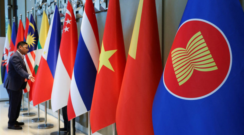 Read moreThe ASEAN flag (right) is placed alongside the flags of its member countries ahead of the ASEAN Foreign Ministers’ Retreat